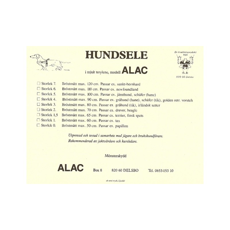 Alac Norsk sele med refleks Sort str. 7. Spar 60 %