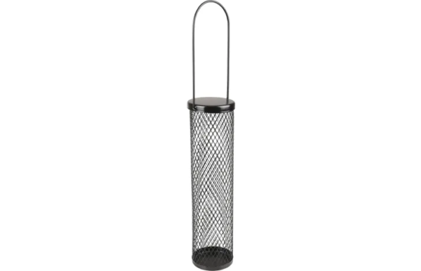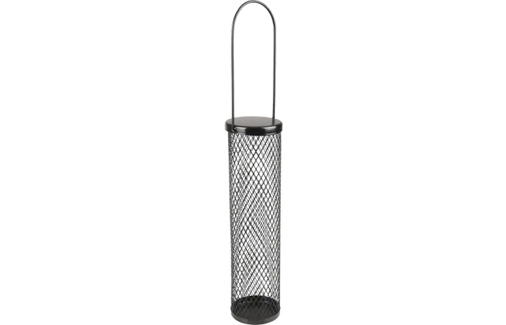 Foderautomat til fugle. Sort. 7,5 cm L 7,5 cm B 28,5 cm H. 150 g. i vægt.