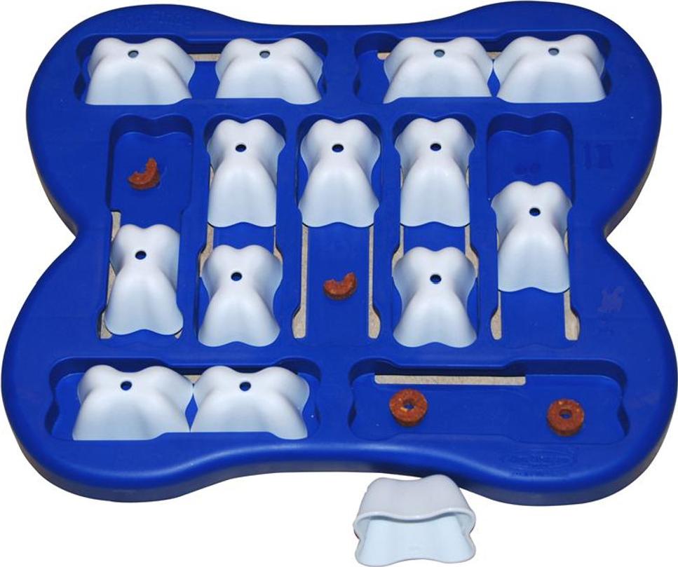 Hunden skal lære at kigge efter godbidder ved at flytte blokke med sin pote eller næse i fire forskellige retninger, kan blokken kun løftes op i slutningen af hvert kursus, blokkene er lavninger, hvor godbidder kan være skjult. I hvert spor kan 1 eller 2 blokke placeres. Lær hunden for at forstå ordene, for eksempel: Vent, farvel, tilbage, apport osv.