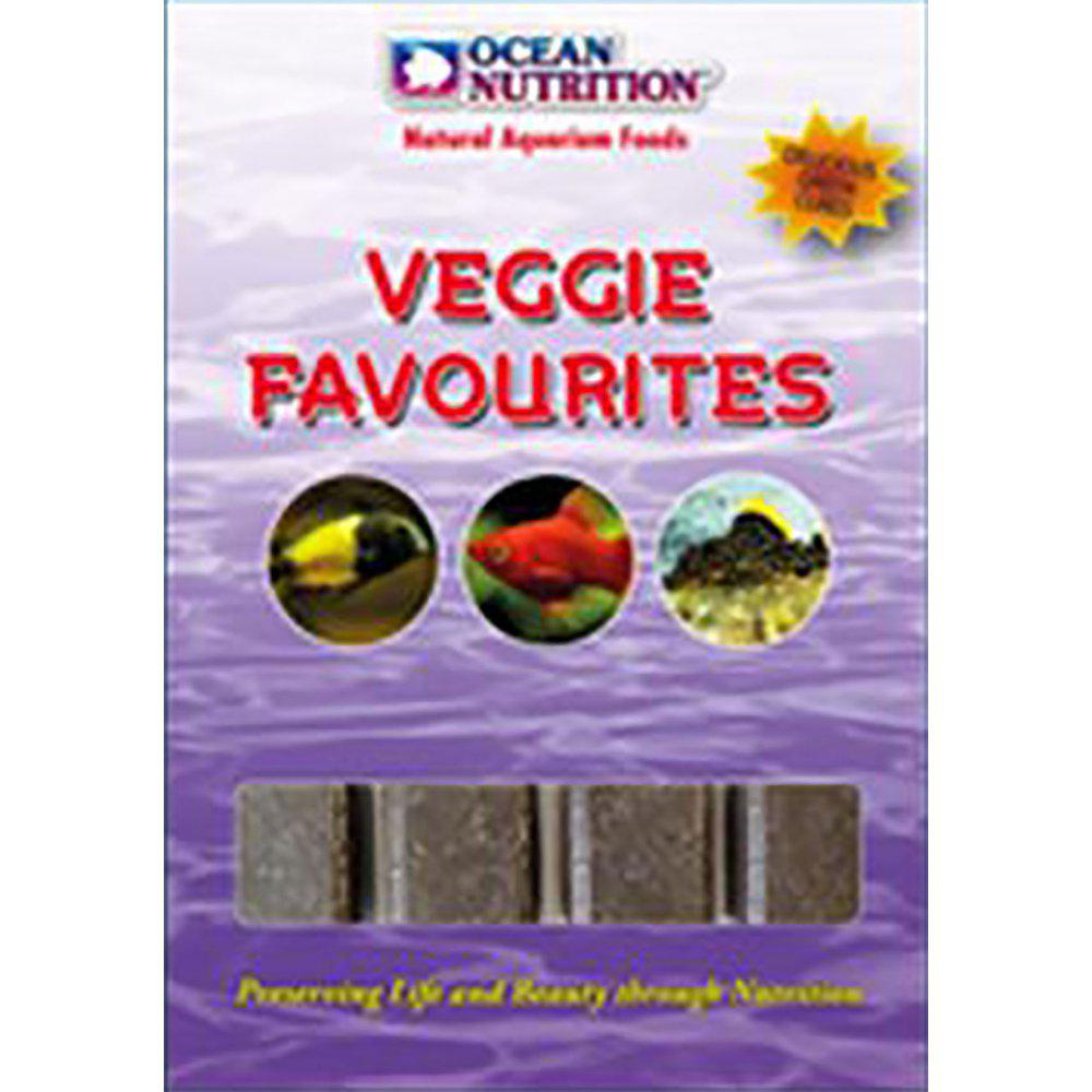 I deres naturlige biotop er en række af vores velkendte akvariefisk specialiseret i at fodre med det lag af alger og bakterievækst, der dækker vandoverflader, og de små byttedyr, der gemmer sig indeni. Dette lag kaldes ‘Aufwuchs’ og er basiskosten for blandt andet mange afrikanske søcichlider, Loricariid-maller og levende bærere. Veggie Favorites blev udviklet til at tilfredsstille disse arters ernæringsmæssige behov. Den frosne og let bundne blanding af grøntsager og alger, beriget med planktoniske krebsdyr, tilbyder en perfekt blanding til fisk, der har brug for deres planteædende kost suppleret med en lille grad af akvatisk animalsk protein.