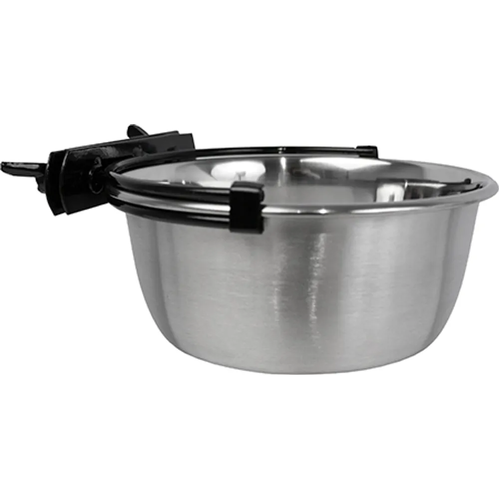 Rustfri skåle, med holder der let monteres i de fleste tremmebure.
