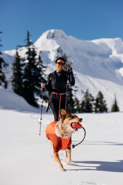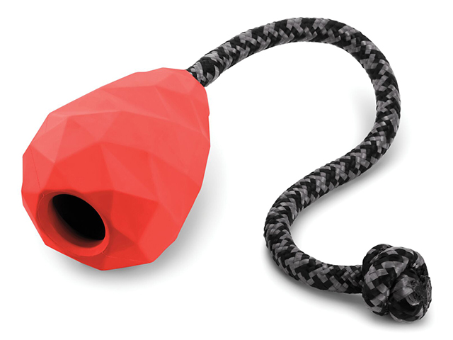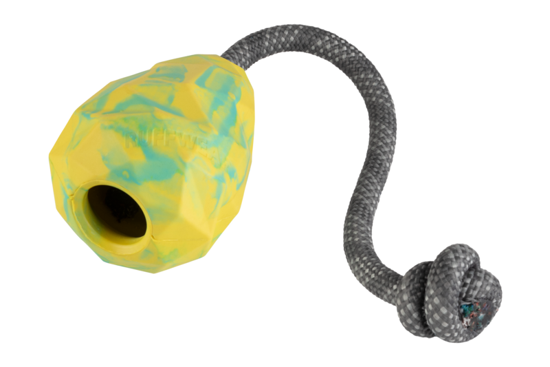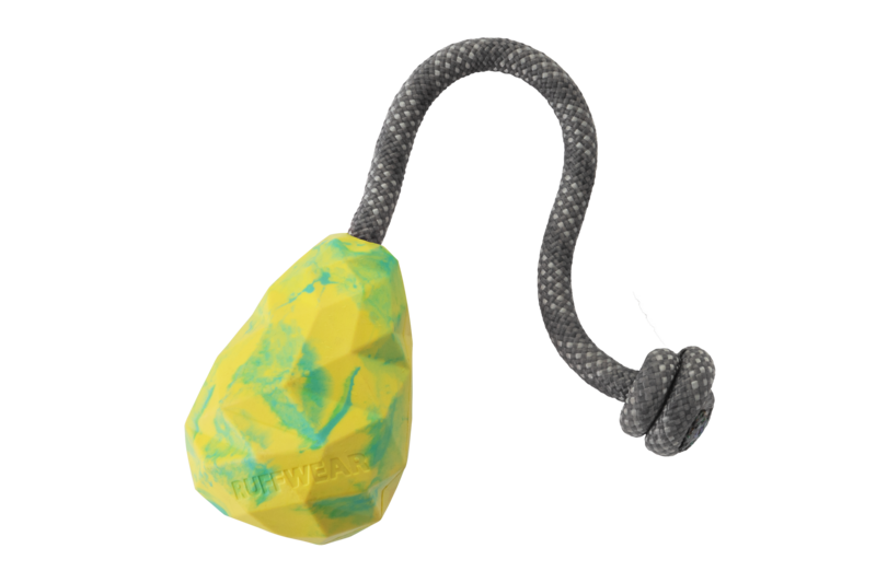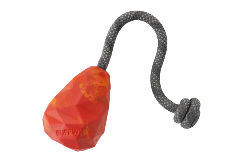 - Ruffwear-legetøj er lavet af slidstærkt naturgummi, en bæredygtig og vedvarende ressource.
