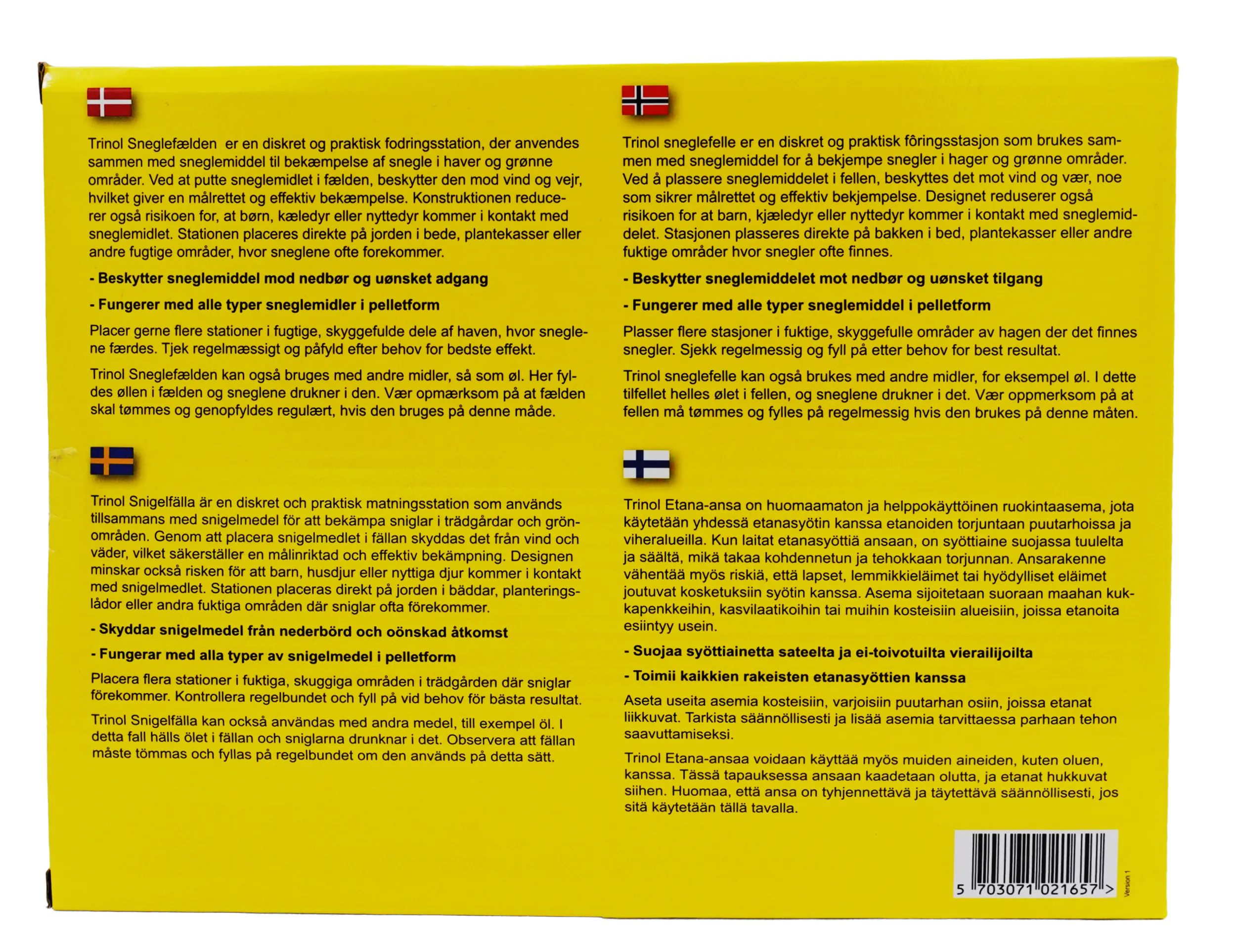 Trinol sneglefælden er en diskret og praktisk fodringsstation, der anvendes sammen med sneglemiddel til bekæmpelse af snegle i haver og grønne områder.